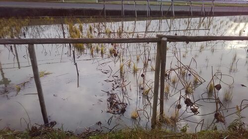 おはようございますー!^^ 今日より、明日のが寒いらしい、、、 今日でも、十分寒いんだけど・・・。 やるっきゃないのか。。。(TT) 雨が降り、、、 水位が上がった冬水湛水・・・。 一昨日、レンコンを掘ったところは、レンコンのいそうなところの、ほん…