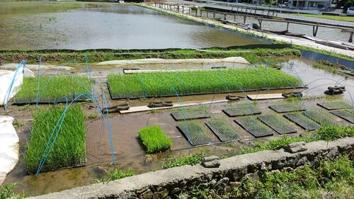 おはようございますー!^^ 今日は、午前中は雨、、、 身体を休めましょう・・・。w ってことで、昨日は田植え7日目。。。 苗代の布団をどける、、、 下段、左のアキタコマチ成苗は、残り5ポット、、、 約700株・・・。 そうすると、下の田んぼを全部…