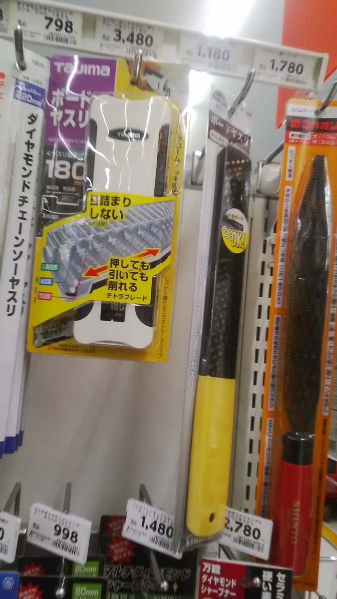ここで、ググると石膏ボードヤスリがいるとのことだったので、再度コメリへ走る。。。