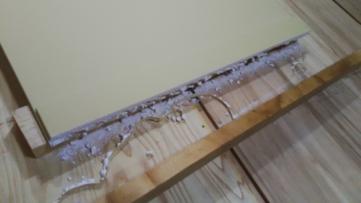 真ん中んのとこにもコンパネの切れっぱしを打ち付けるのですが、、、