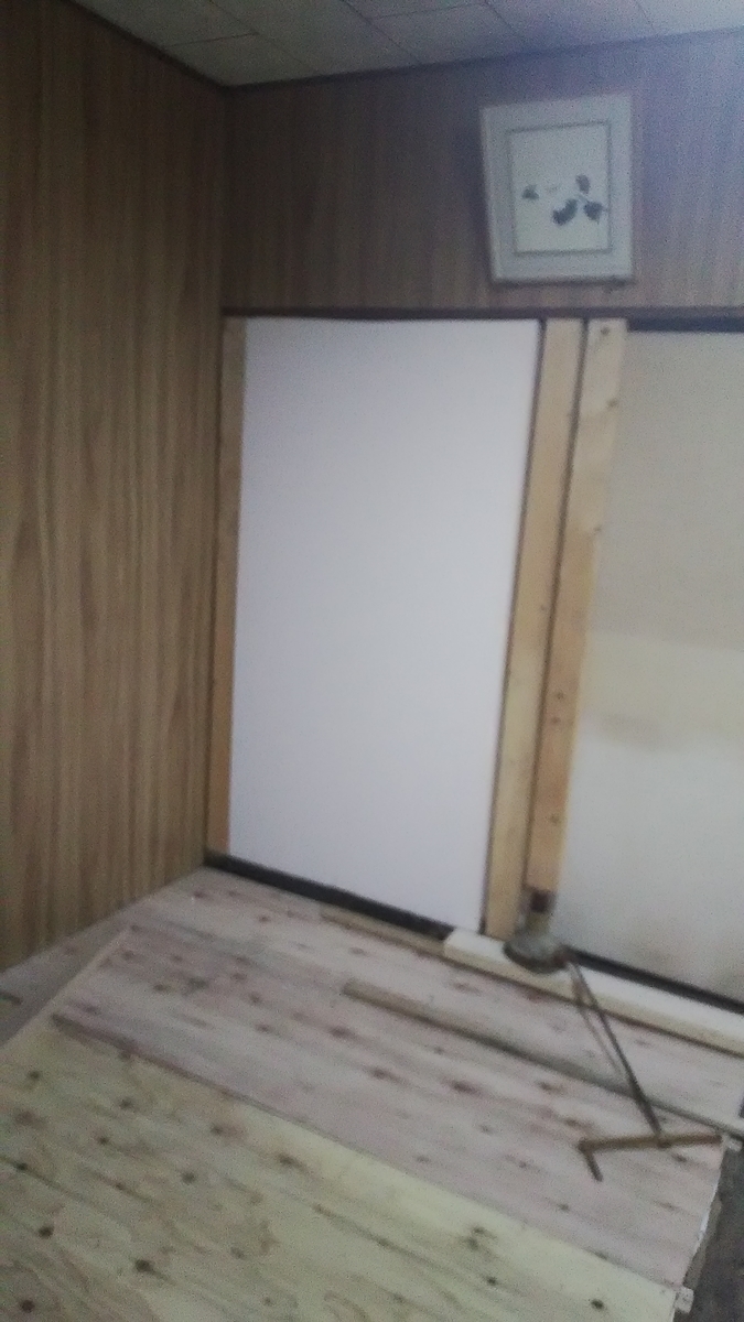 レールも外し、ガラス戸も壁材として使用しようとしたら・・・。