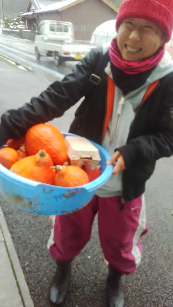 放置してた畑にあった残りのコリンキーと卵を少しあげました、、、