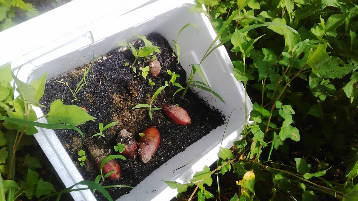 そういえば、ツルを買って埋めた20本ぐらいのシルクスイート。。。