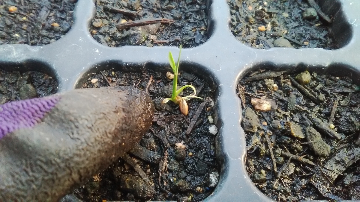 手前の、何を植えたか忘れてて、んで、何も芽がでてないのをよくよく見ましたら。。。