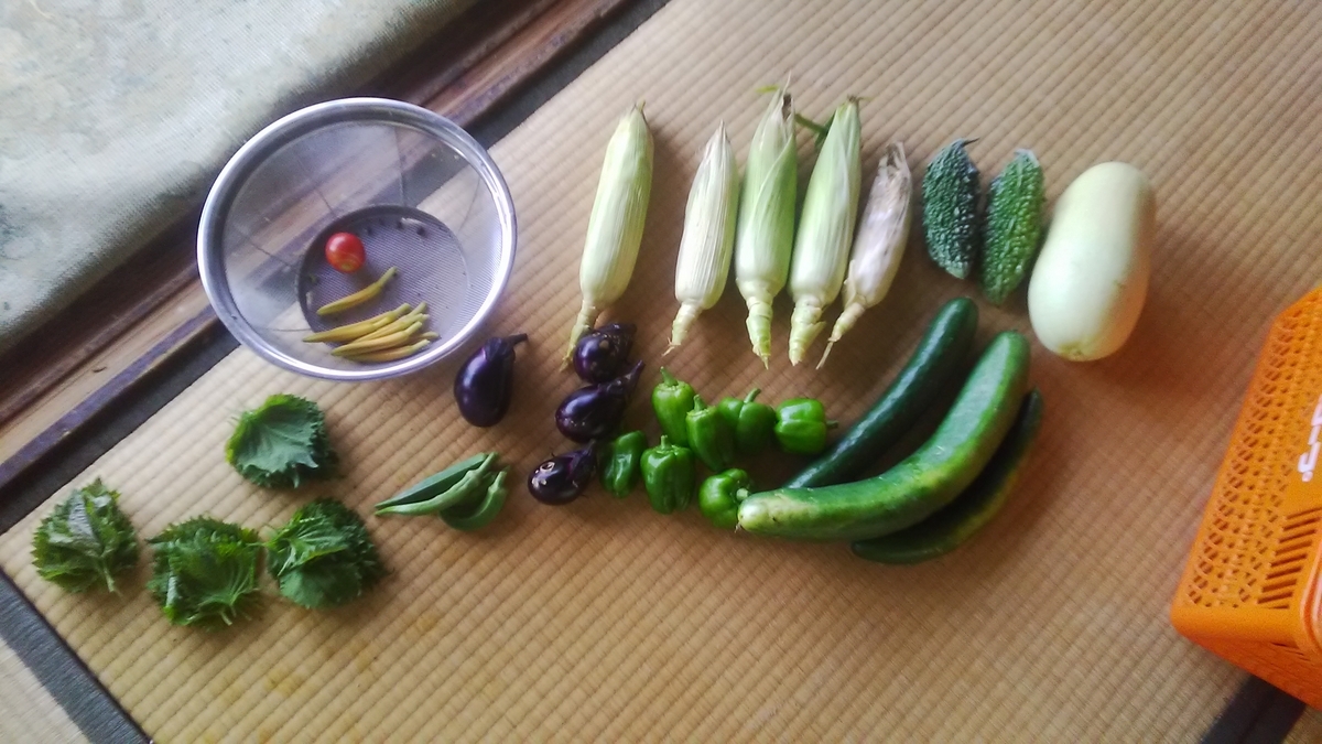 卵とニンニク、ゴーヤ、とうもろこしを買って頂いて、、、