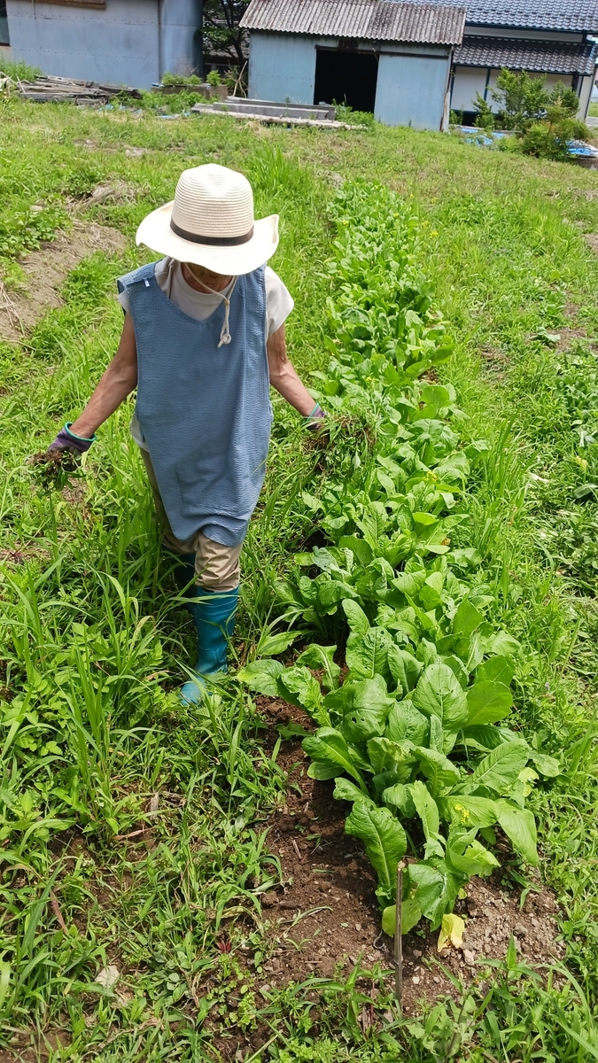 母は、ニンニクを収穫した後、ホウレン草の種を蒔く。。。