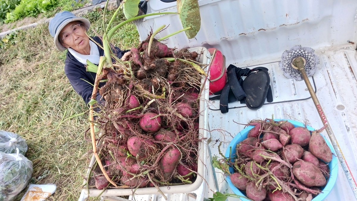 んで、初めはサツマイモや里芋、カボチャを傷つけないように先に収穫してからと思って野良してたのです。。。